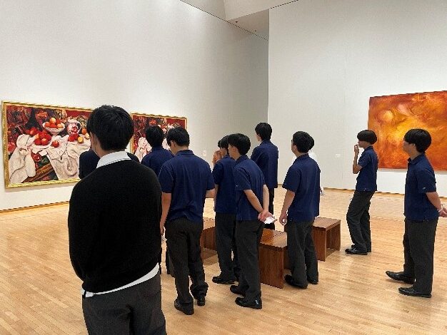 7月18日(木)に特進コース文系クラス1,2年生を対象に東京都現代美術館見学を行いました。今回は『2025MOTスクールプログラム』を実施させて頂き、『9つのプロフィール 1935→2025』を主に鑑賞しました。美術館の学芸員の方から複数の美術品を取り上げて丁寧に説明して頂き、生徒らは熱心に現代美術へ触れることができました。事前に授業『総合的探究の時間』で様々な年代の歴史を調べてまとめた上で、当時の作品から多角的な視点を深めることができました。